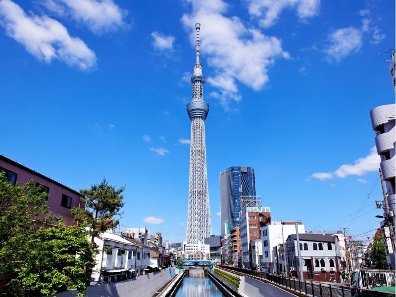 - Chụp ảnh tháp truyền hình Tokyo Sky Tree từ dòng sông Sumida..